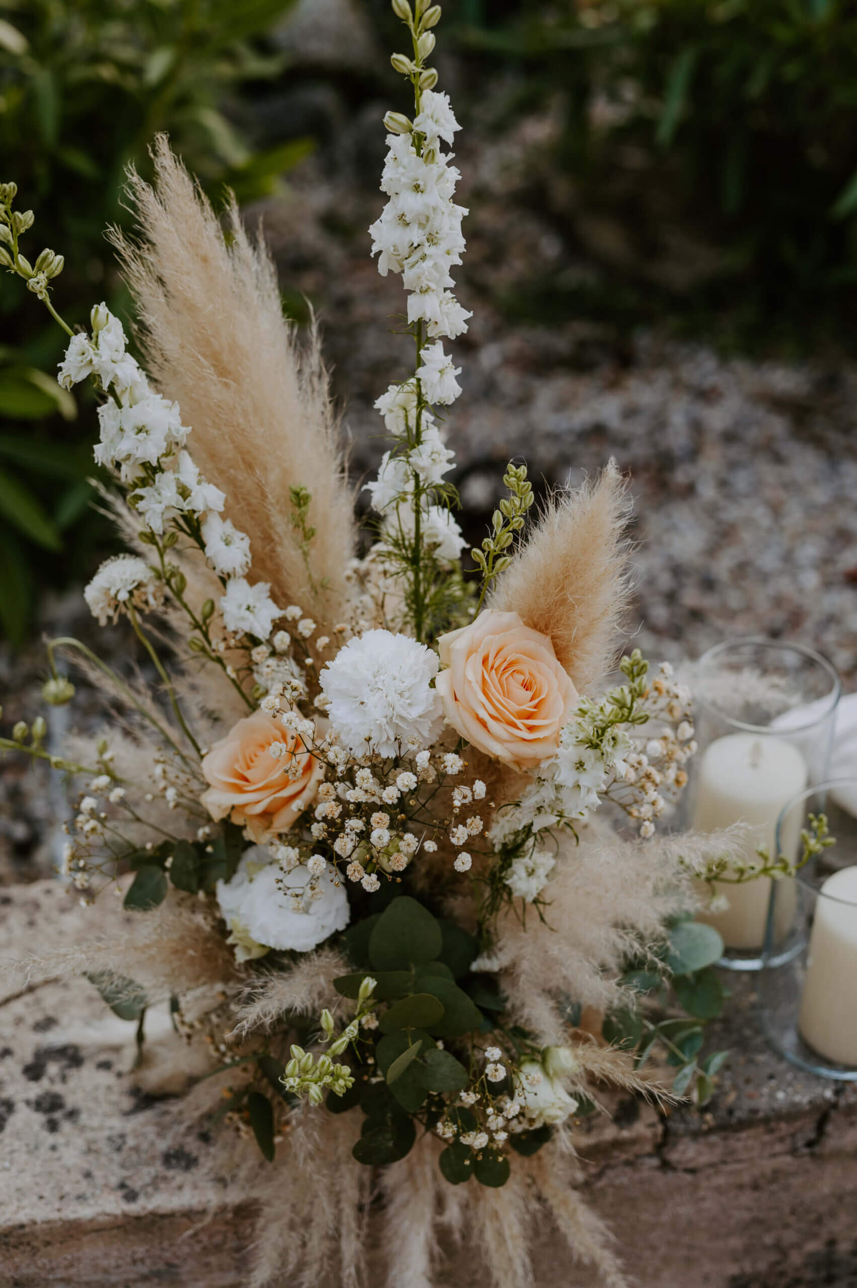 Mariage bohème chic, une décoration florale en pampas et fleurs séchées